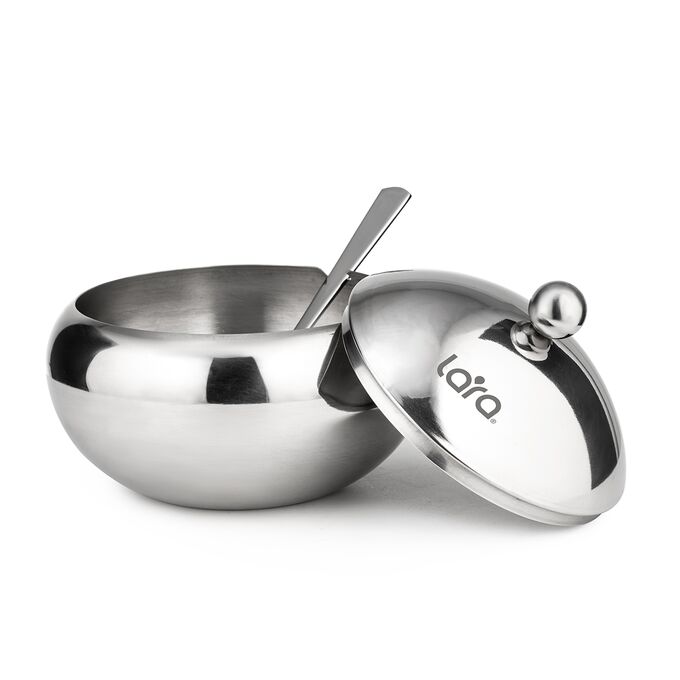 Сахарница LARA LR08-35SS с ложкой 460мл, сталь, крышка из полированной стали