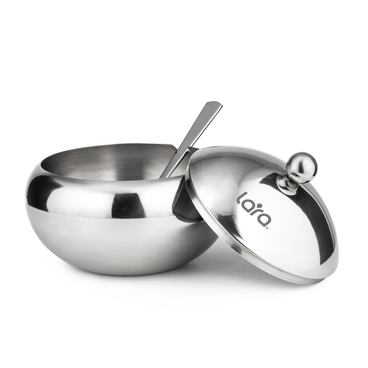 Сахарница LARA LR08-36SS с ложкой 560мл, сталь, крышка из полированной стали
