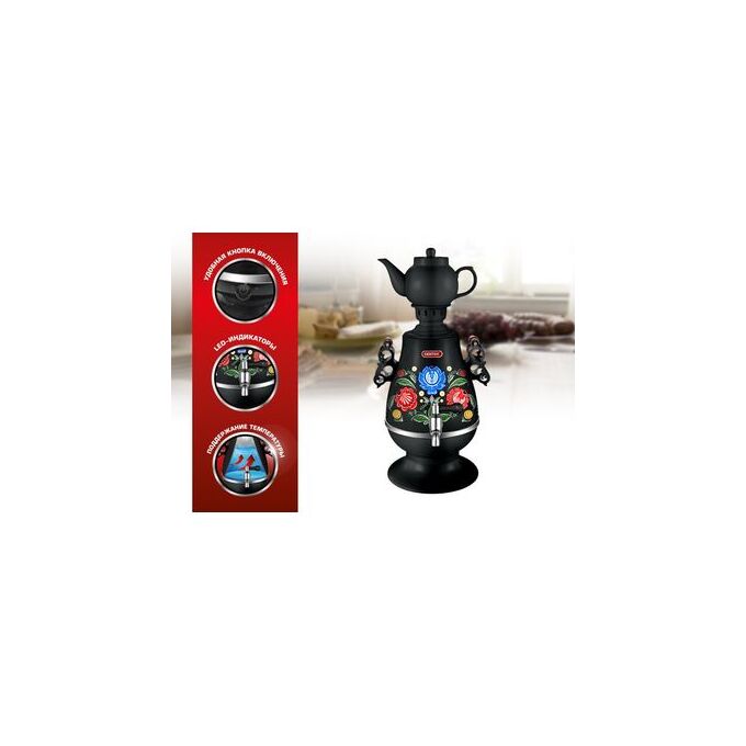 Самовар CENTEK CT-0091 B черный+рисунок