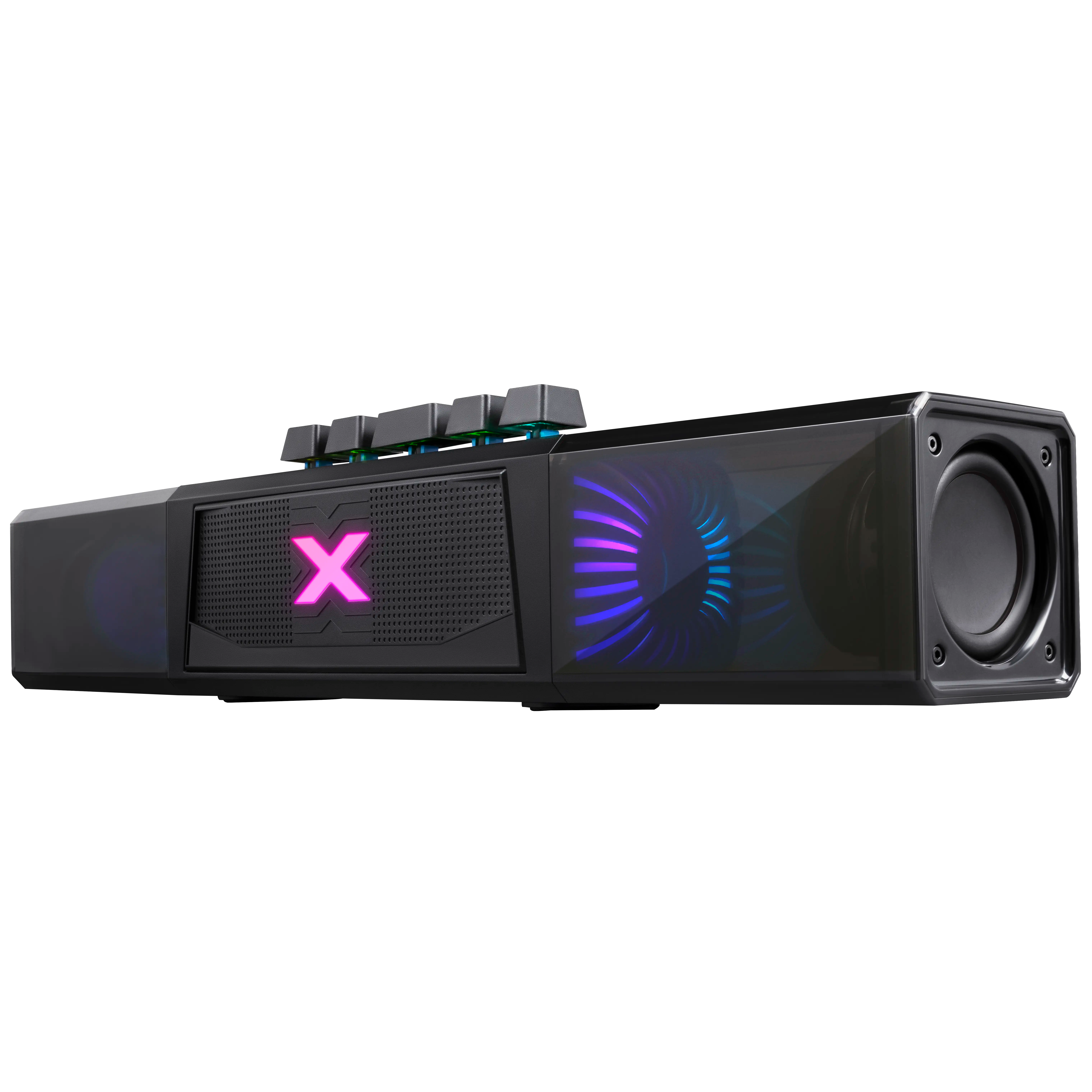 Портативная колонка-саундбар с функцией Bluetooth. Универсальное устройство подходит для ПК, телевизора и для использования вне дома. Встроенный аккумулятор ёмкостью 2400 мАч позволяет использовать динамик без привязки к источнику питания. Красивая подсветка, потрясающее качество звука для ваших любимых фильмов и музыки дома или в путешествии.