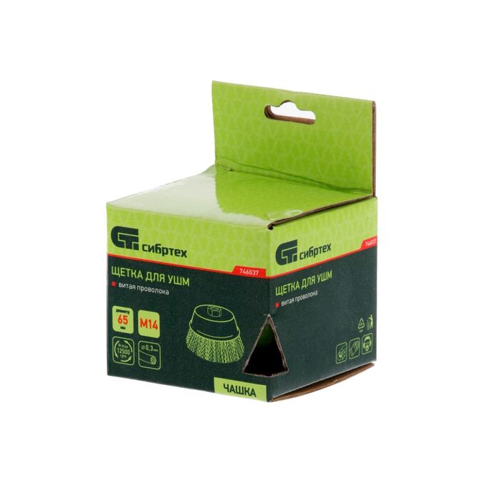 Щетка для УШМ Сибртех 746037 65мм, М14, чашка, витая проволока, 0,3мм