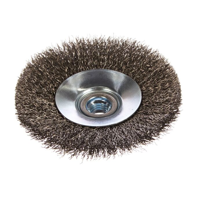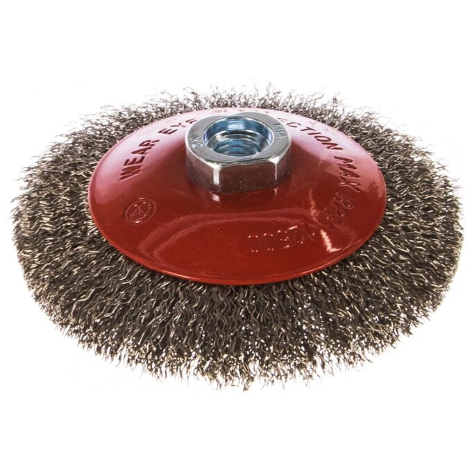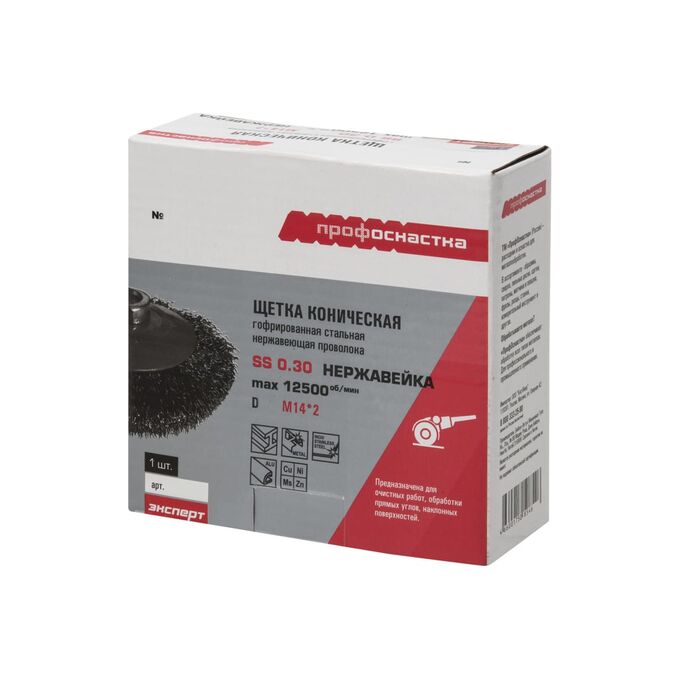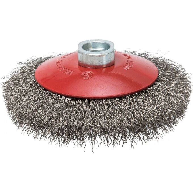 Щетка коническая, гофрированная, для УШМ № 537 ПрофОснастка Эксперт 20804003 D115 мм М14*2 RPM 12500 SS нерж 0,3