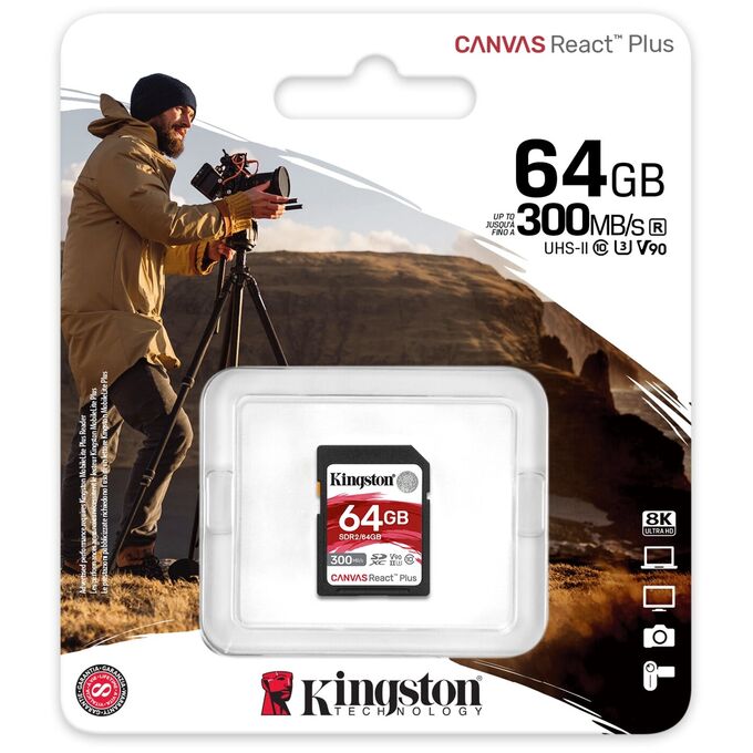 SDXC 64GB Kingston Class 10 UHS-II U3 V90 React Plus (300 Mb/s)