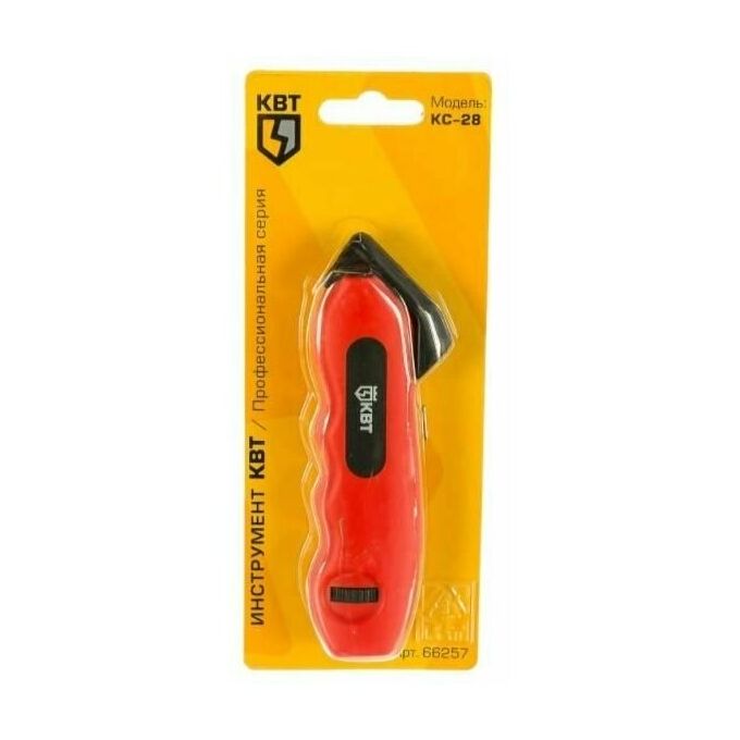 4.Подпружиненная скоба инструмента для снятия изоляции КВТ КС-28 66257 служит для фиксации изделия на кабеле;