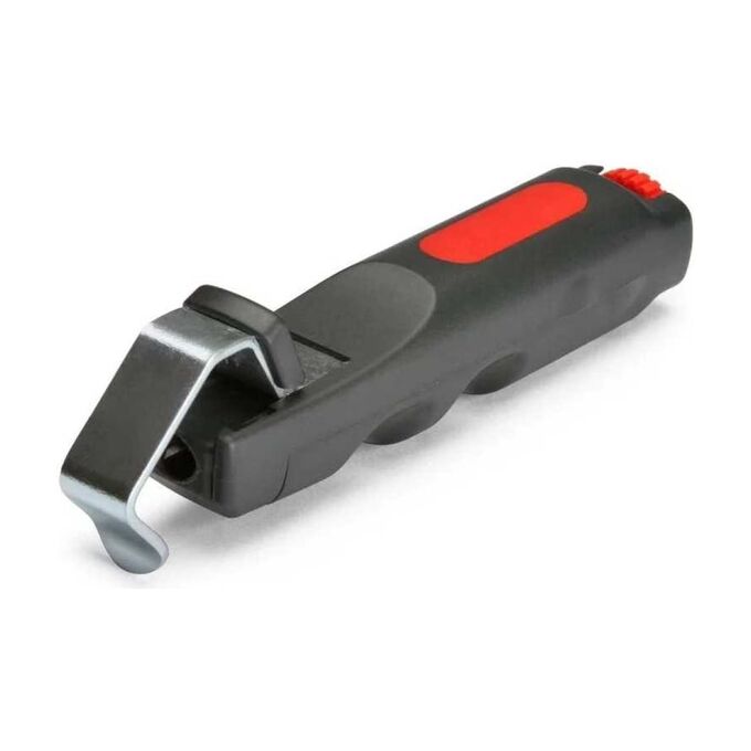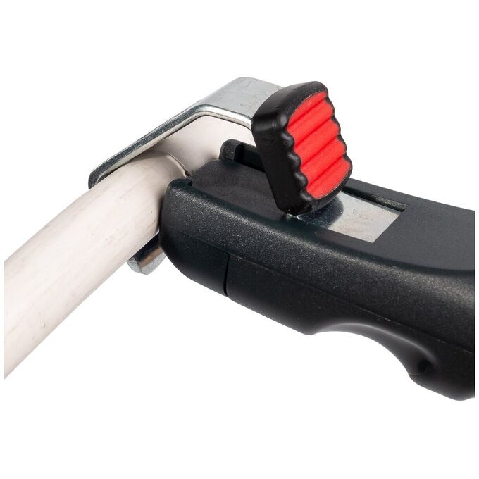 Инструмент для снятия изоляции КВТ КС-28у 70438 аккуратно делает надрезы на кабеле и снимает слой оболочки без повреждения металлических жил. Представляет собой компактное устройство в виде эргономичной рукоятки с прижимной скобой, которая фиксирует провод в рабочей зоне. С помощью автоматически поворачивающегося ножа и регулировки глубины реза можно осуществлять как продольные, так и поперечные разрезы защитных оболочек кабеля.