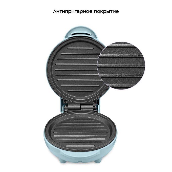 Прибор готовит бутерброды под закрытой крышкой, зажимая между двумя нагреваемыми панелями. Это позволяет одновременно прогревать продукты с двух сторон без необходимости переворачивания в процессе. Такой способ ускоряет приготовление и делает его удобнее.