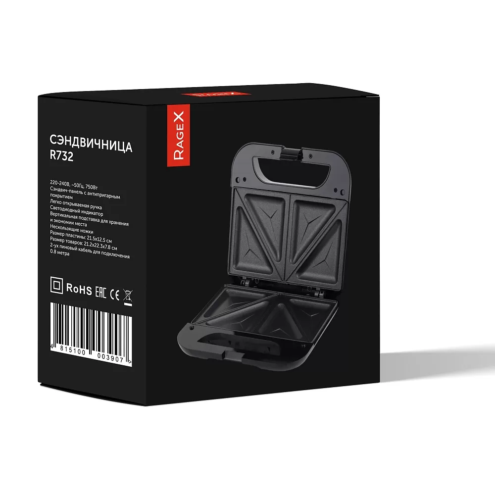 Сэндвичница RageX R732-000, сэндвичи, 750Вт, черный