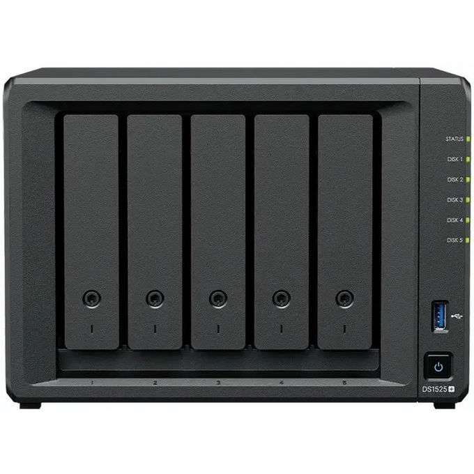 Сетевое хранилище Synology DS1525+ (5x2.5"/3.5" SATA, 2хM.2 2280 NVMe SSD, Ryzen V1500B-2.2GHz, 8GB DDR4, 2x2,5 Гбит/с)