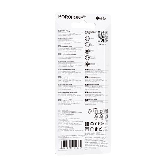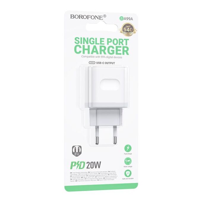 Сетевое зарядное устройство BOROFONE BA99A/ / PD/ 1 разъём Type-C/ Выход: 20W/ Белый