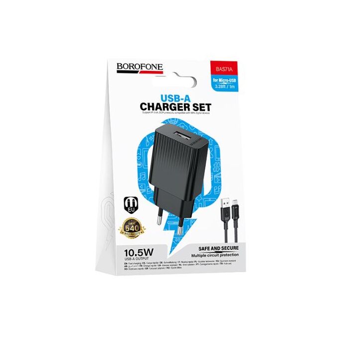 Сетевое зарядное устройство BOROFONE BAS71A/ СЗУ + Кабель Micro 1m/ 1 USB/ Выход: 10.5W/ Черный