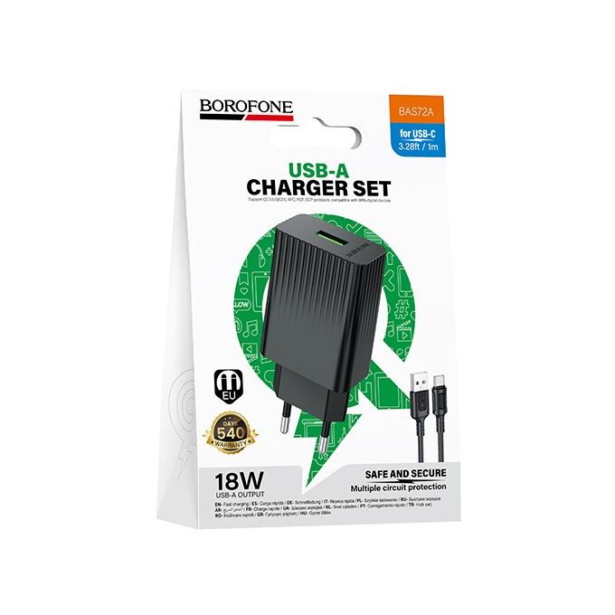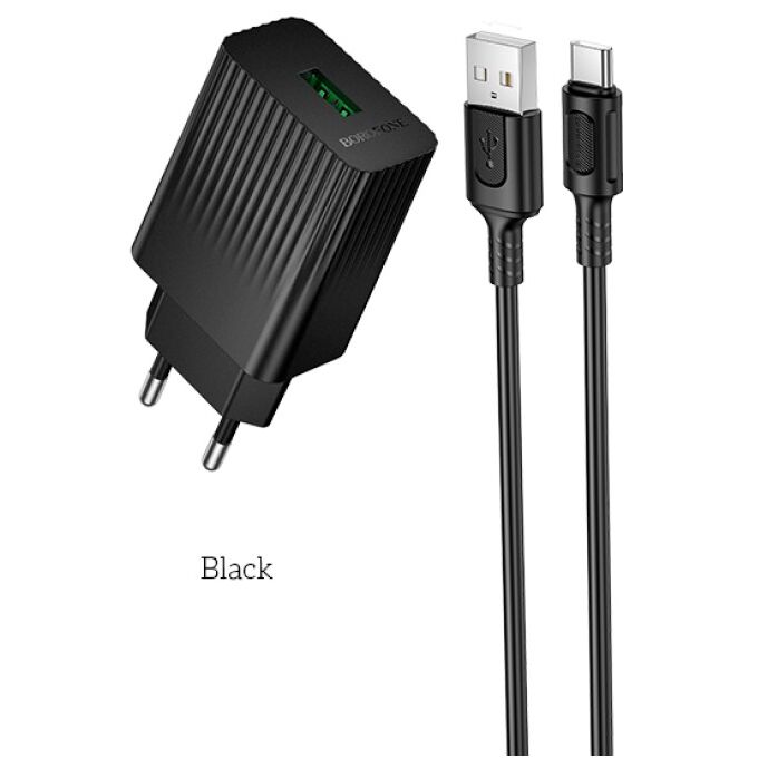 Сетевое зарядное устройство BOROFONE BAS72A/ СЗУ + Кабель Type-C 1m/ QC 3.0/ 1 USB/ Выход: 18W/ Черный
