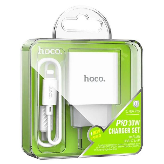 Сетевое зарядное устройство HOCO C76A Pro/ + Кабель C-Lightning 1m/ PD/ 1 разъём Type-C/ Выход: 30W/ Белый