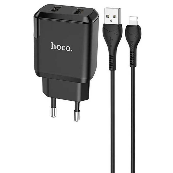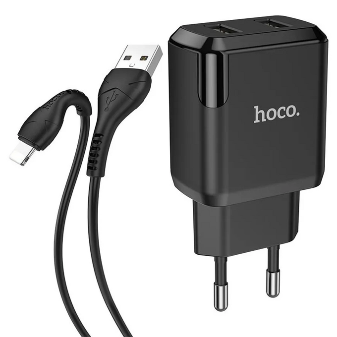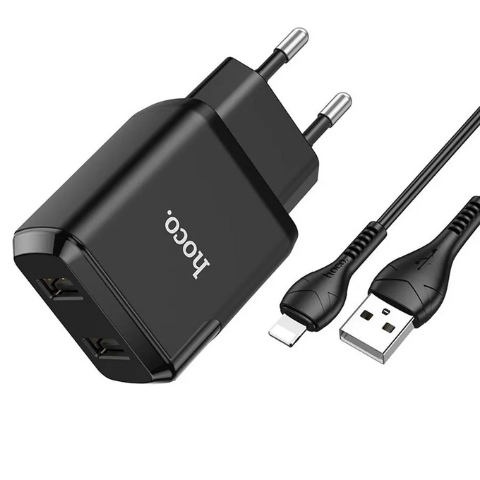 Сетевое зарядное устройство HOCO N7 Speedy 2xUSB с кабелем USB-Lightning, 2.1A, 10W черный