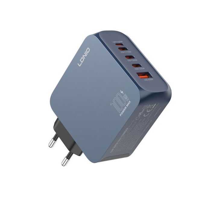 Сетевое зарядное устройство LDNIO Q8/ GaN/ PD+PPS+SCP+QC 4+/ 5 USB/ Выход: 3.3-20V, max 100W/ Серый