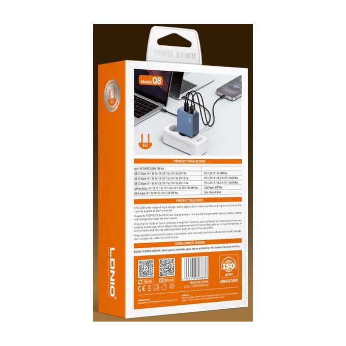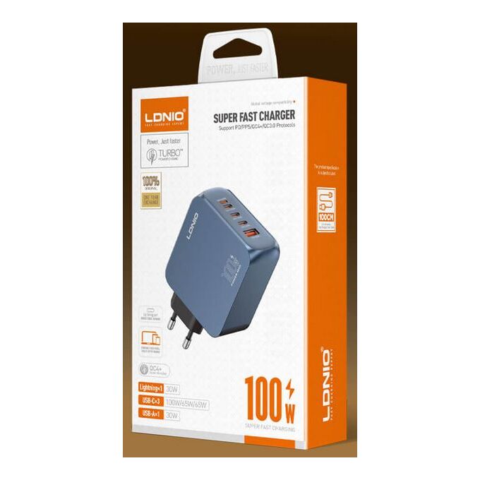 LD_C3483 LDNIO Q8/ Сетевое ЗУ GaN/ PD+PPS+SCP+QC 4+/ 5 USB/ Выход: 3.3-20V, max 100W/ Gray