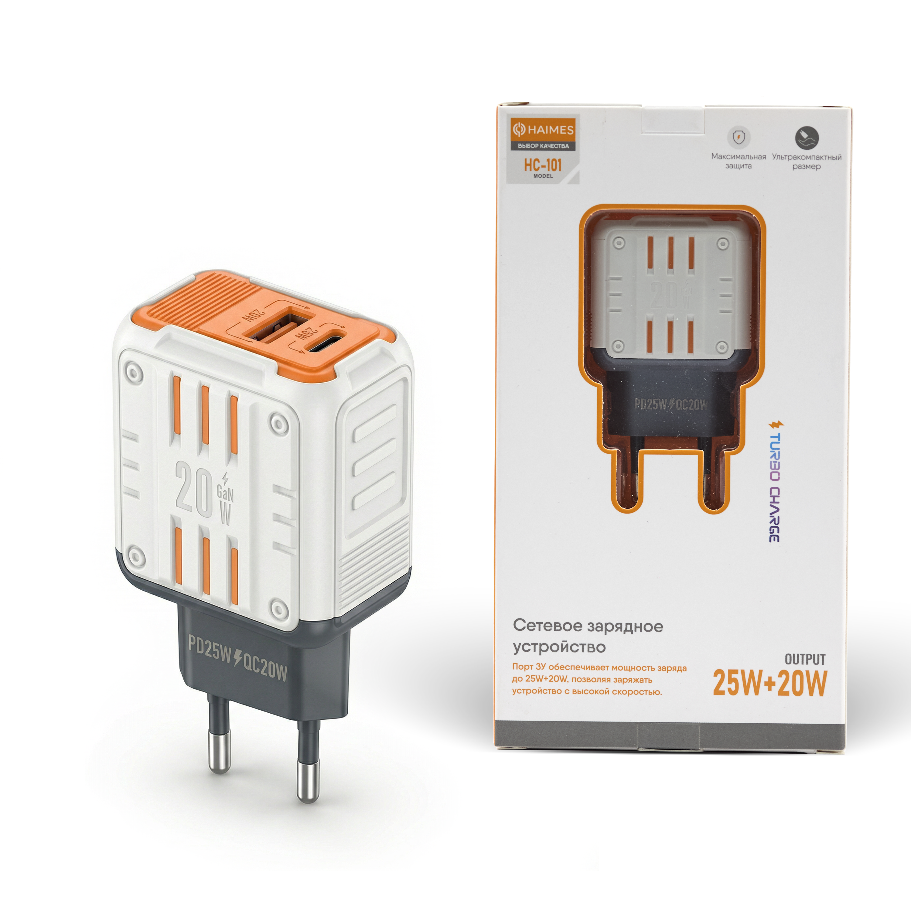 СЗУ HAIMES / Блок / 1USB / 1Type-C / Быстрая зарядка PD25W