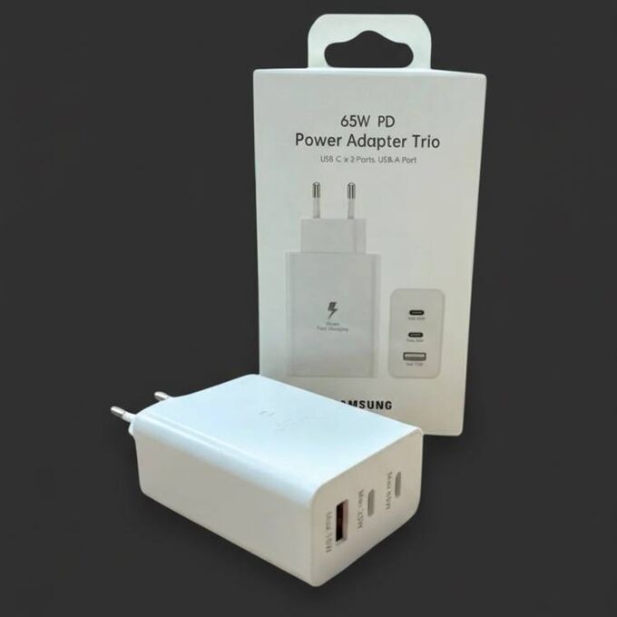 Сетевое Зарядное Устройство Samsung 65W PD adapter trio USB-Cx2 Ports, USB-A port black Белый ( EP-T6530) Original