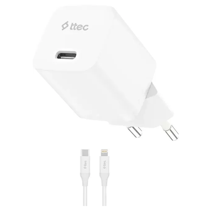 Сетевое зарядное устройство TTEC 2SCG20LB SmartCharger GAN 20W USB-C PD Travel Fast Charger с кабелем USB-C-Lightning, длина кабеля 150см белый