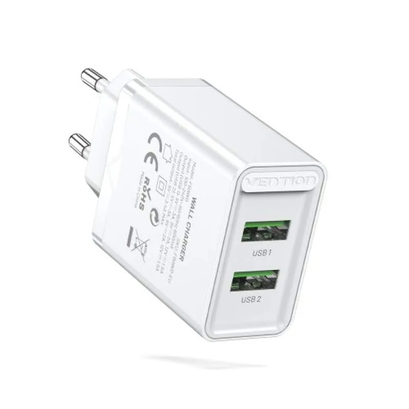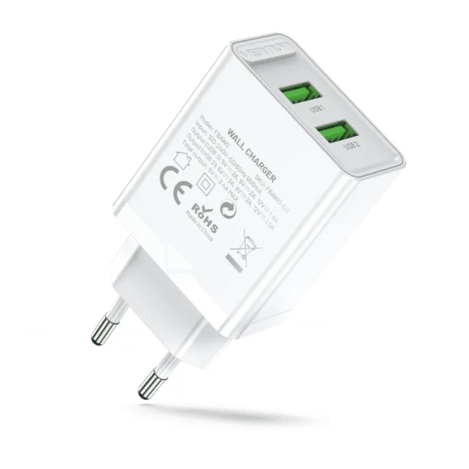 Сетевое зарядное устройство Vention FBAW0-EU на 2 порта USB (A+A) QC 3.0 Белый