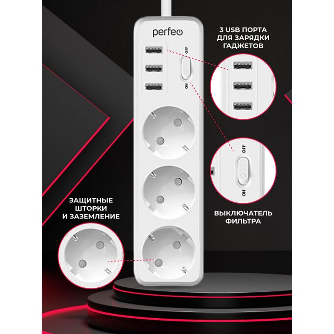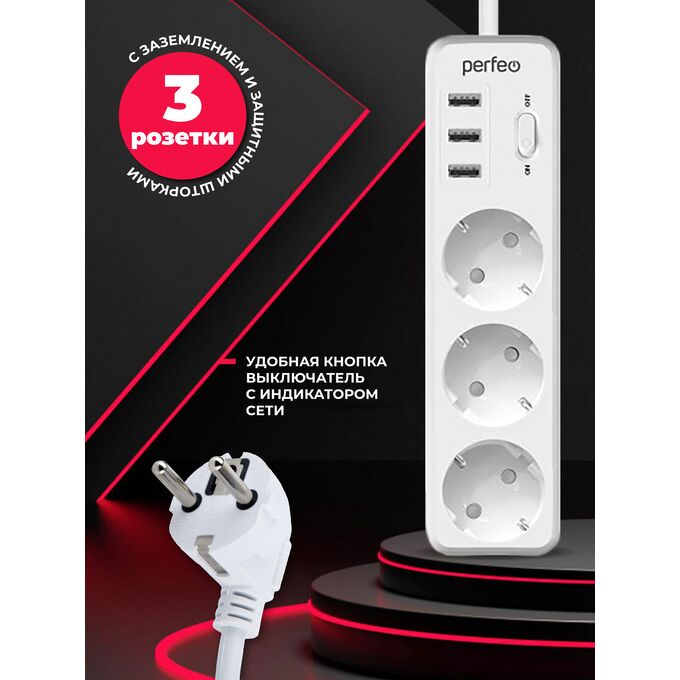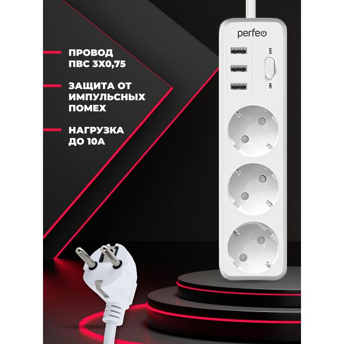 Сетевой фильтр с заземлением, со встроенной защитой от импульсных помех, короткого замыкания с защитными шторками. Отличный выбор для компьютера, аксессуар для пк и другой бытовой техники. Пилот, тройник, удлинитель оснащен тремя портами USB-A. Современный, привлекательный внешний вид, компактный корпус, кнопку включения/отключения питания. Защитные шторки не позволят ребенку вставить в розетку что-либо. Удлинитель предоставляет высокий уровень безопасности. Подойдет для EURO вилок. Фильтр выполнен из негорючего пластика до 850С. Можете одновременно заряжать три устройства. Суммарная выходная сила тока – 2,4А. Прекрасная альтернатива зарядки для телефона. Нужный аксессуар для офиса и дома. Присутствует возможность крепления на стене. Ток: 10А. Мощность сетевого фильтра - 2500 Вт. Выход USB: 5В, 2.4А (суммарно). Незаменимый аксессуар для ноутбука, компьютера. Защищает от высокочастотных импульсов в сети, скачков напряжения.