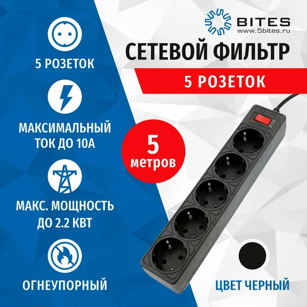 Сетевой фильтр 5bites Garda SP5B-550 5S/3*0.75mm2/5M/Black