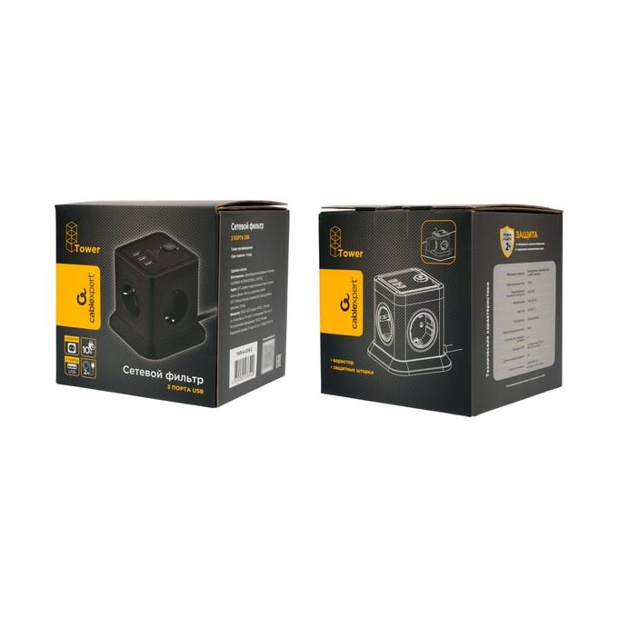 Сетевой фильтр Cablexpert Tower TWR-4-U3-B-2 черный