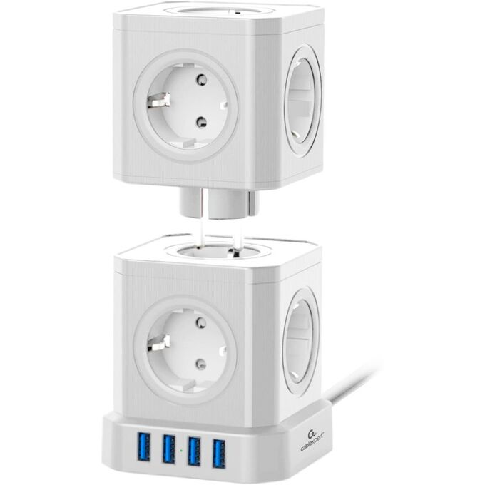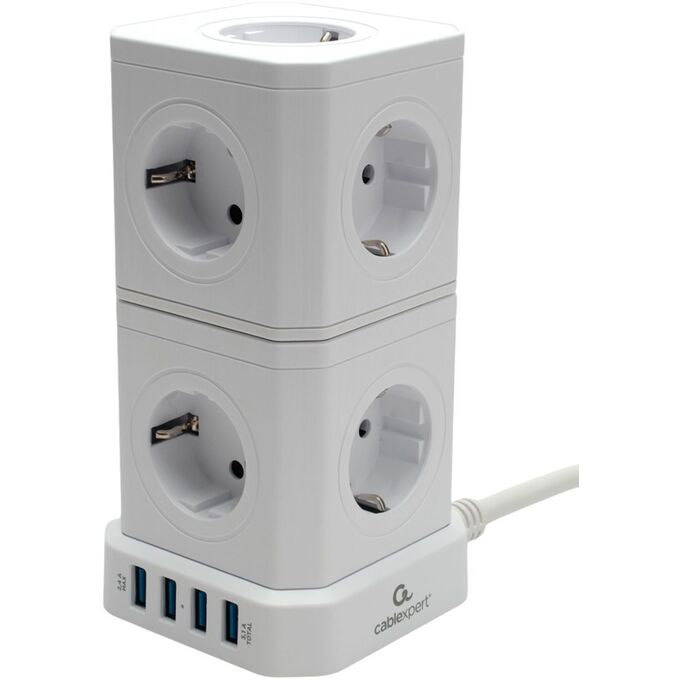Сетевой фильтр Cablexpert TWR-9-U4-W-2 Tower 9р, 16А, 4хUSB, 3.1А, 2м, ур.защиты 4+, белый, коробка
