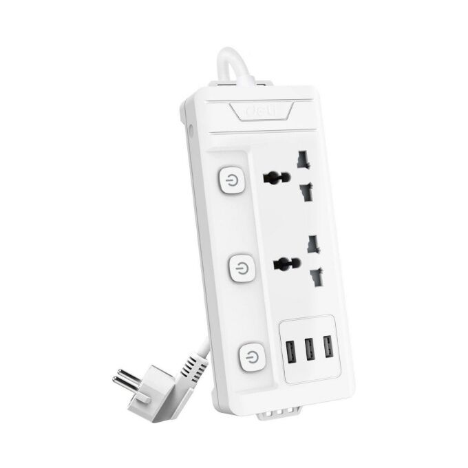 Сетевой фильтр Deli ET409 2м (2 розетки) белый (пакет ПЭ)