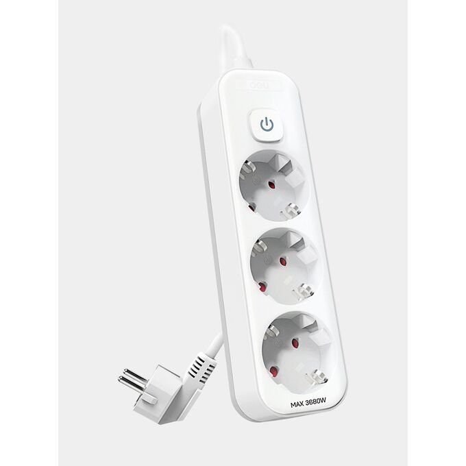 Сетевой фильтр Deli ET433 5м (3 розетки) белый (пакет ПЭ)