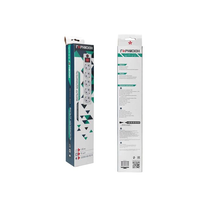 Сетевой фильтр Гарнизон EHLW-1 10А 1.8м 5 розеток белый (21214)