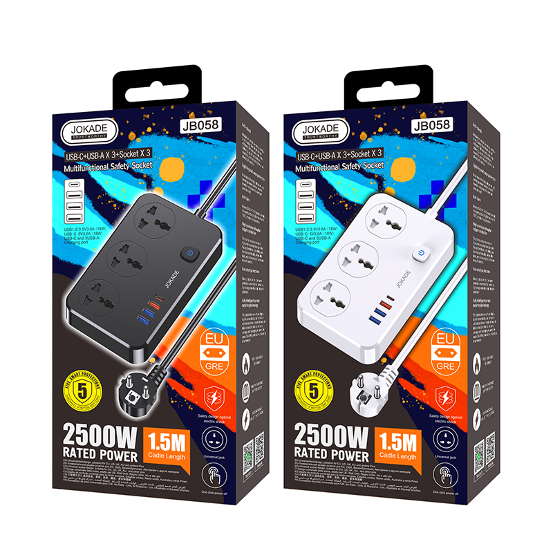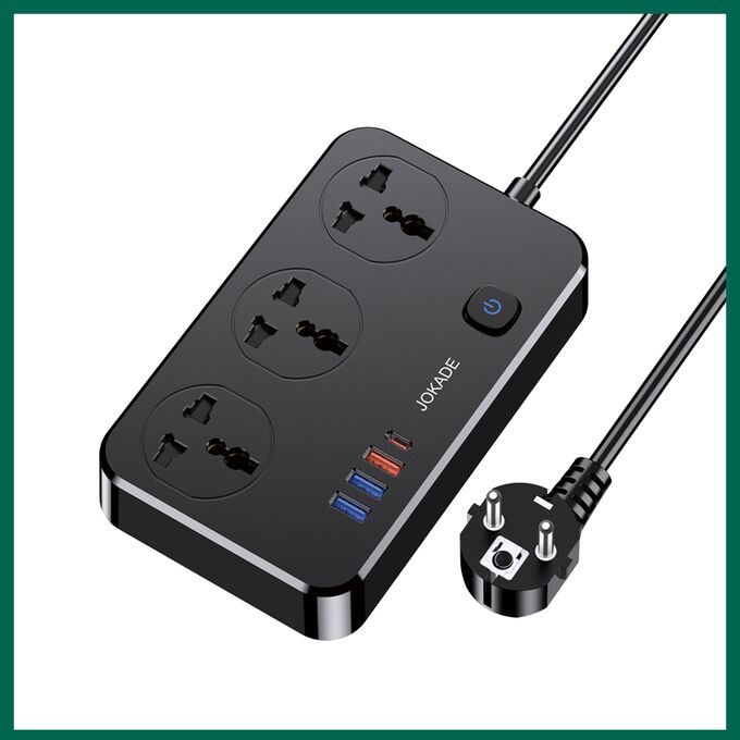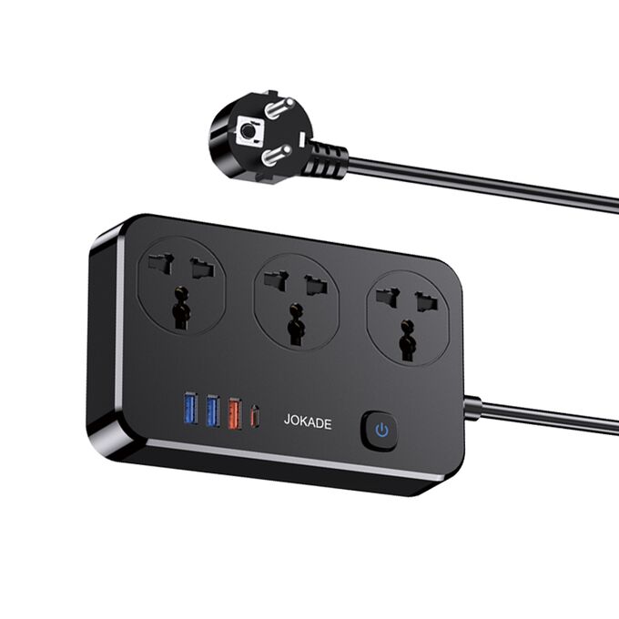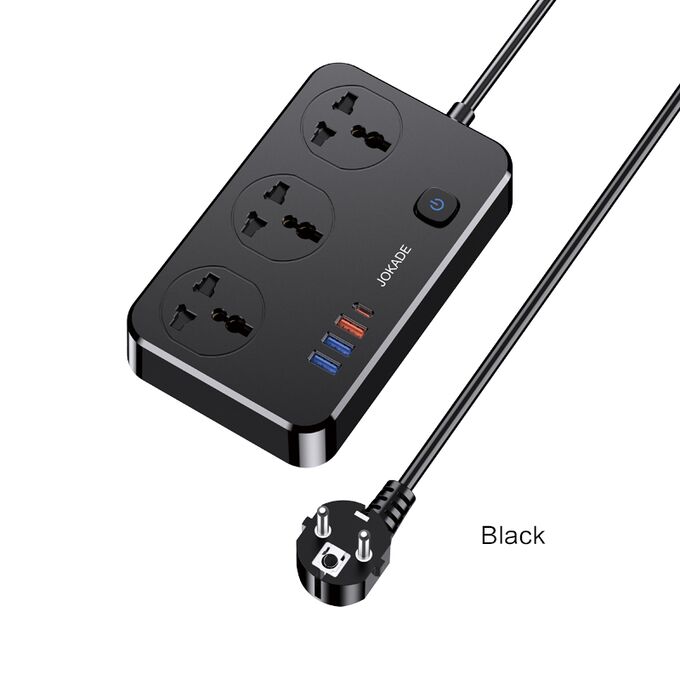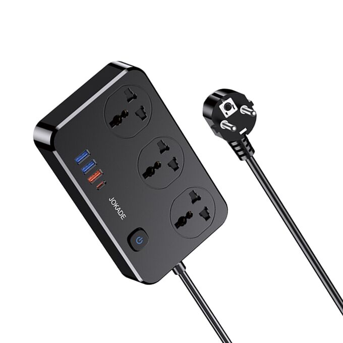 Сетевой фильтр JOKADE JB058 3 розетки + 3 USB + 1 USB-C Black