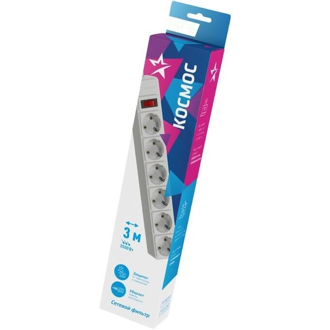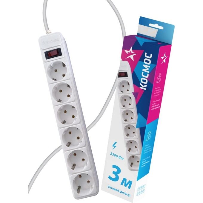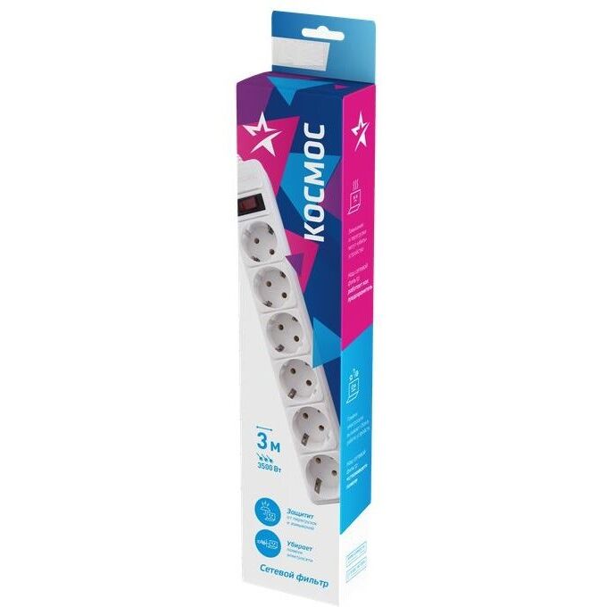 Сетевой фильтр Космос (FKsm3m-6g(W)16A) 3м 6 гнезд, 16A белый