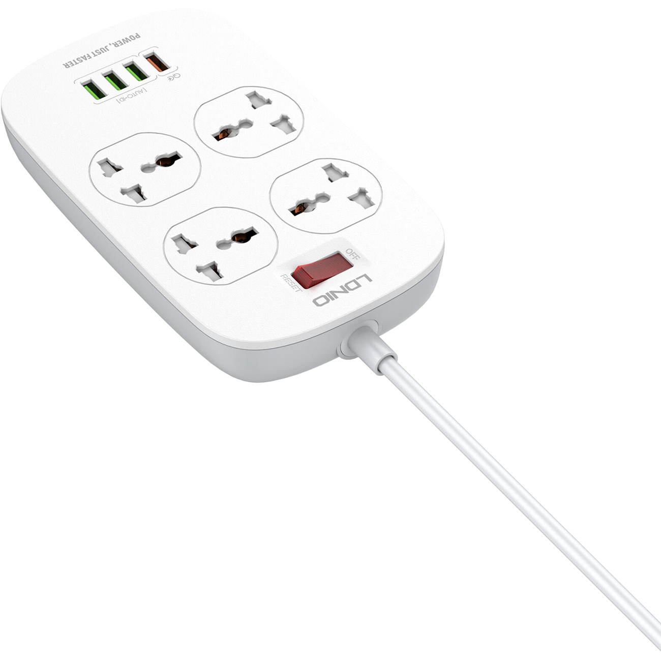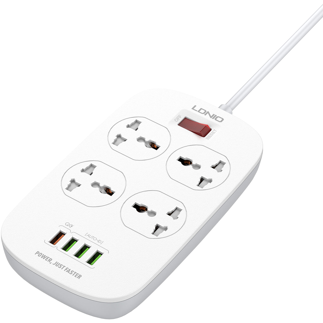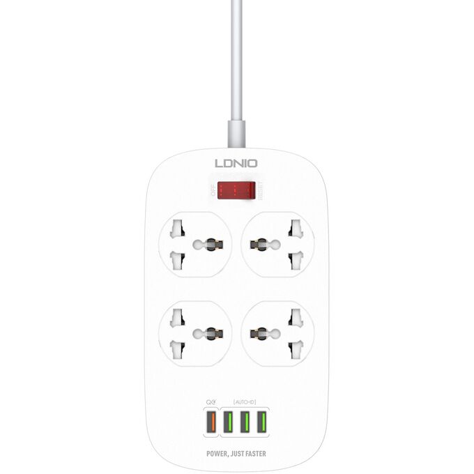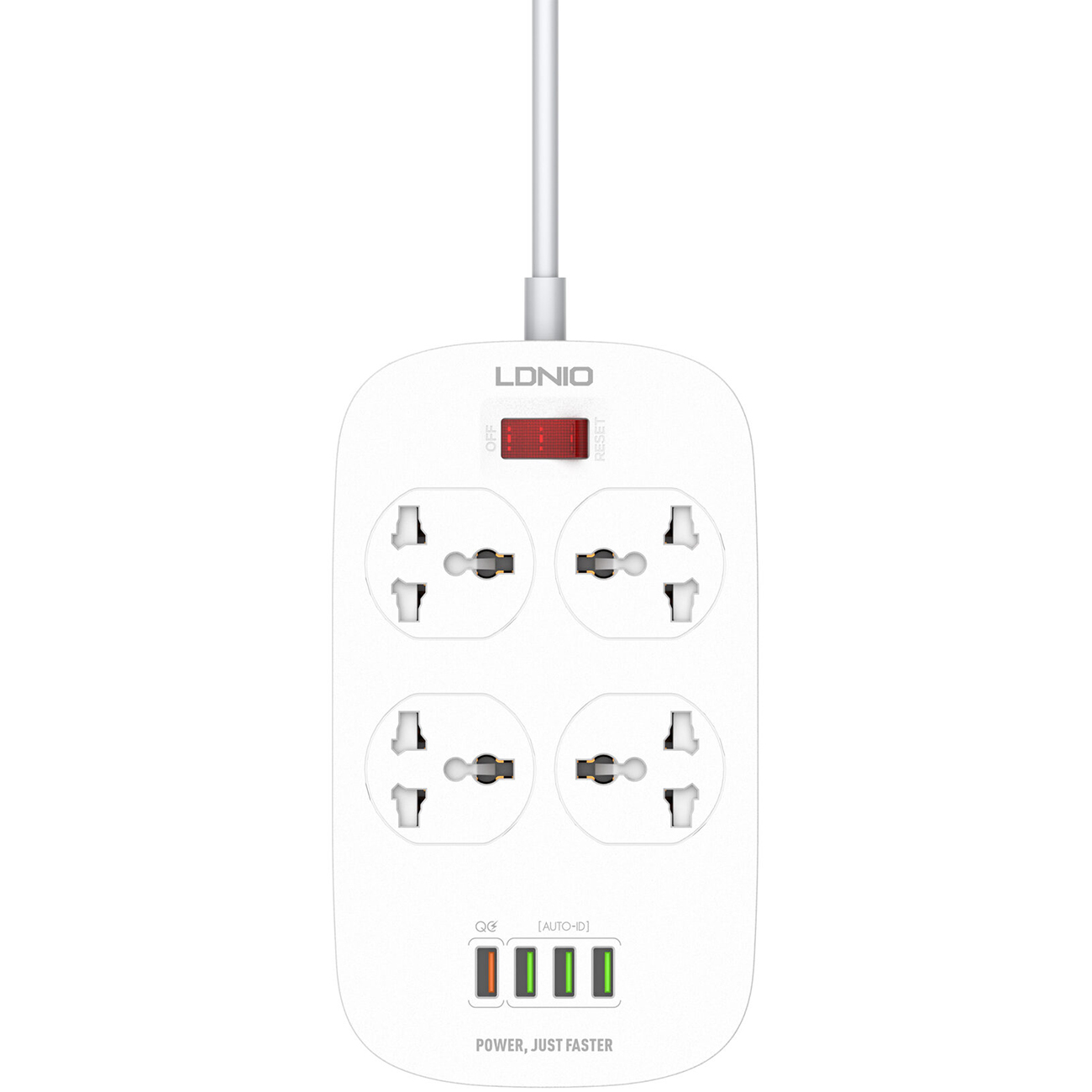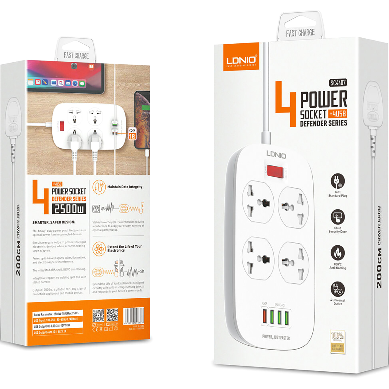 Сетевой фильтр LDNIO SC4407Q (LD B4435) 2м/4 розетки EU UK US/2500W/4 USB+QC 3.0/Выкл. на розетки/White