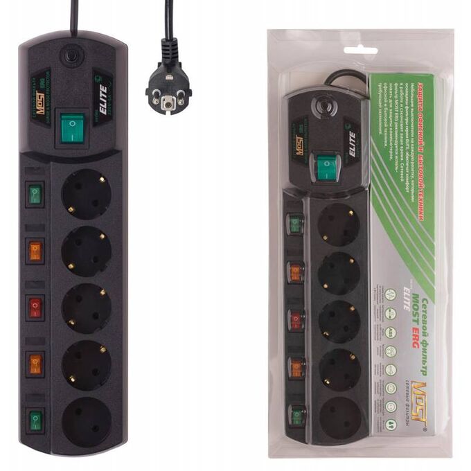 Сетевой фильтр Most ERG 5м (5 розеток) черный (коробка)