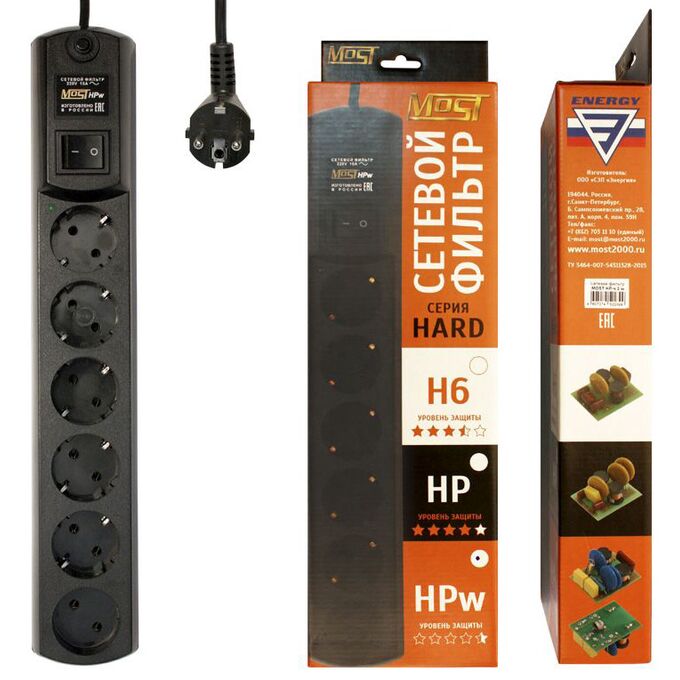 Сетевой фильтр Most HPw 5м (6 розеток) черный