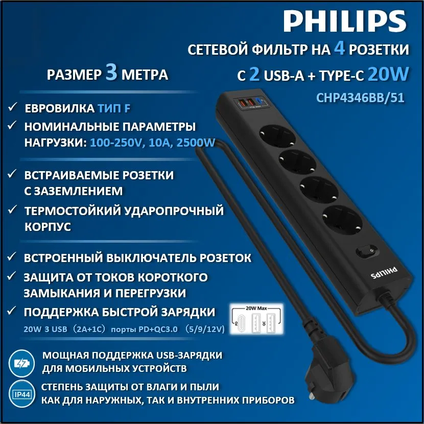 Сетевой фильтр Philips CHP4346BB/51 черный