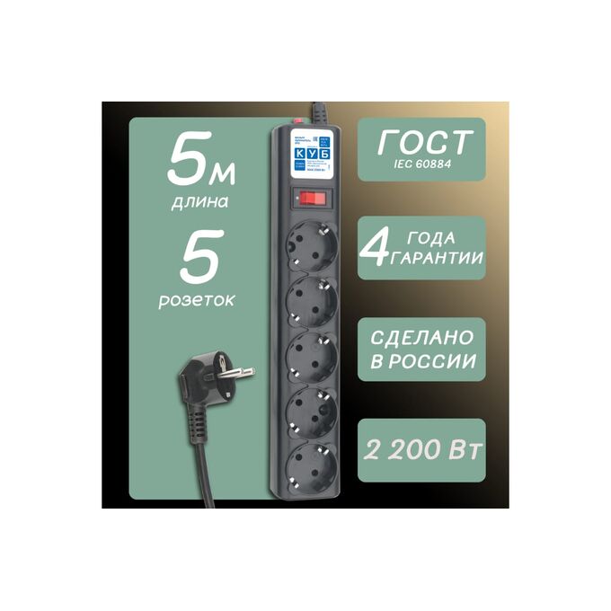 Сетевой фильтр Power Cube SPG5-С5 5.0 м, 5 розеток, 10А, black