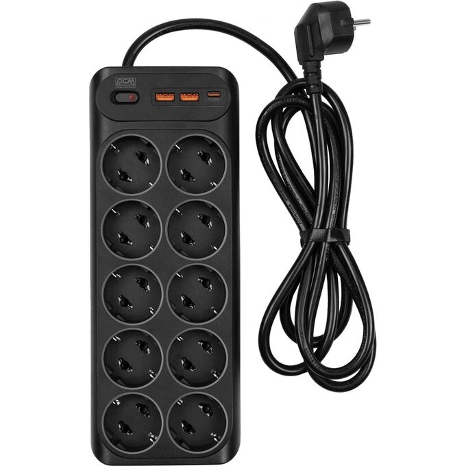 Сетевой фильтр Powercom SP-10 USB2A1СB 1.8м (10 розеток) черный