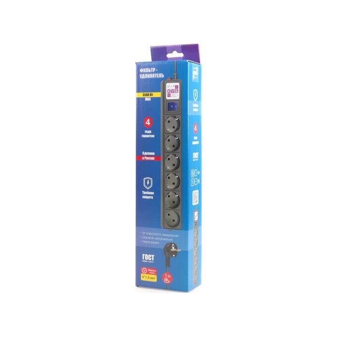 Сетевой фильтр Power cube SPG6-B2 5м 6 розеток черный (коробка)