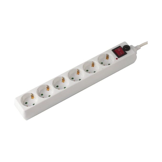 Сетевой фильтр SONNEN U-365 (511427) 6 розеток, с заземлением, выключатель, 10 А, 5м белый