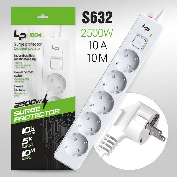 Сетевой фильтр-удлинитель Live-Power LP1004 5розеток С/З 10А с выкл. 10м white