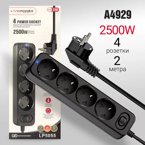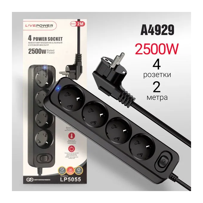 Сетевой фильтр-удлинитель Live-Power LP5055 4 розеток 2000mm Black
