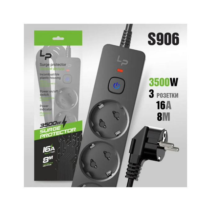 Сетевой фильтр-удлинитель Live-Power LP5110 3розетки С/З 16А с выкл. 8м black