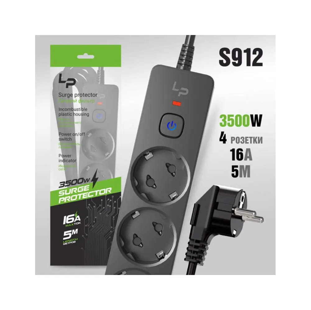 Сетевой фильтр-удлинитель Live-Power LP5125 4розетки С/З 16А с выкл. 5м black