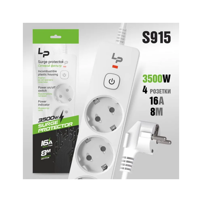 Сетевой фильтр-удлинитель Live-Power LP5130 4розетки С/З 16А с выкл. 8м white