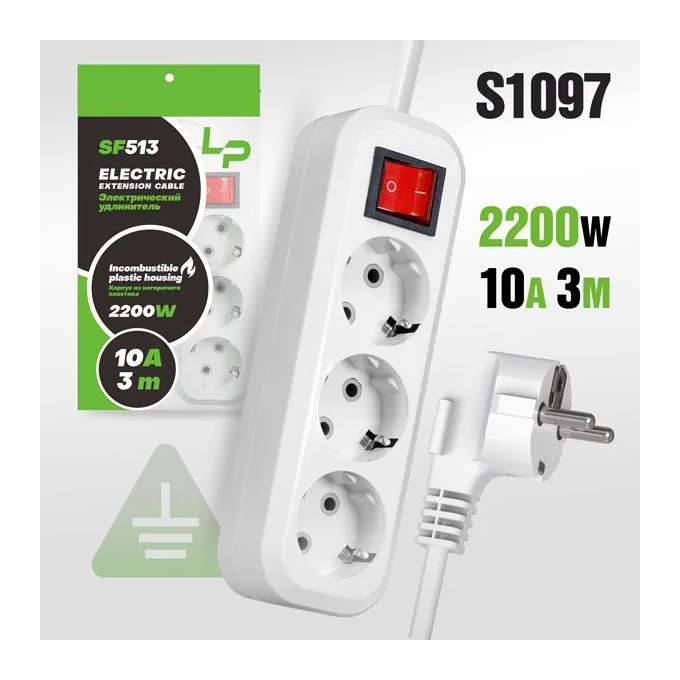 Сетевой фильтр-удлинитель LP SF513 3м С/З с переключателем White