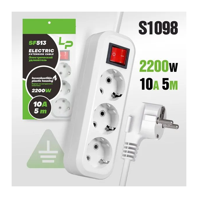 Сетевой фильтр-удлинитель LP SF513 5м С/З с переключателем White