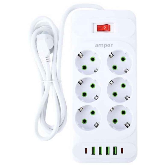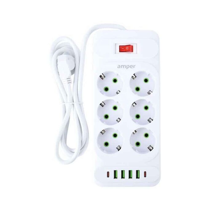 Сетевой удлинитель Amper JH-1076U-4W 4,0м, 6 розеток белый