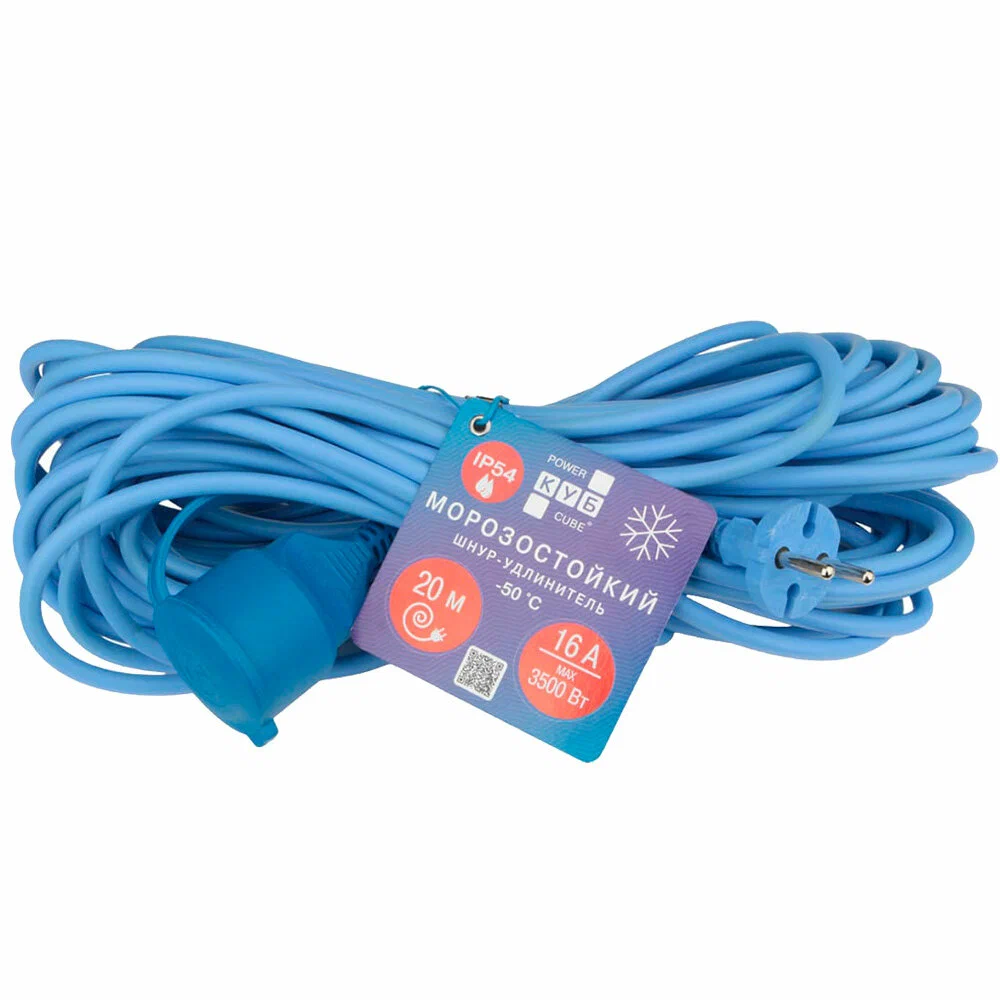 Сетевой удлинитель Power cube PC-2F-R-20(IP) 20м 1 розетка синий (коробка)