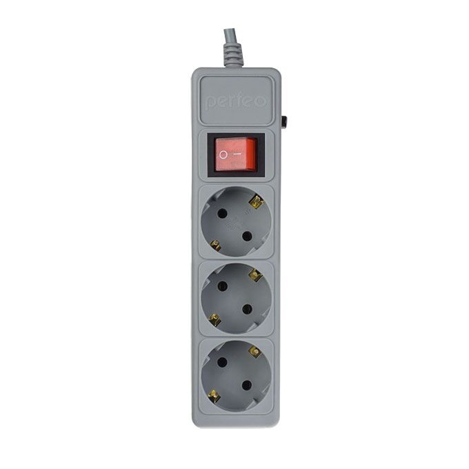 Сетевой фильтр Perfeo "POWER+", 5,0м, 3 розетки, серый (PF-PP-3/5,0-G)